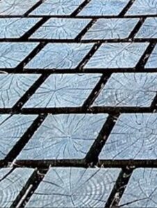 この路面なのですが、なんと栗の木を輪切りにしたものが敷き詰められてつくられています。