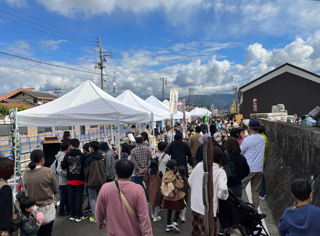 今年施工をお手伝いさせていただいた江口だんご摂田屋店様も賑わっておりました。こちらでは焼きたてのみたらし団子を食べることができますが、出来立ての柔らかさとほのかにする炭の香りが、今までの団子の概念を覆すおいしさに毎回感動します。