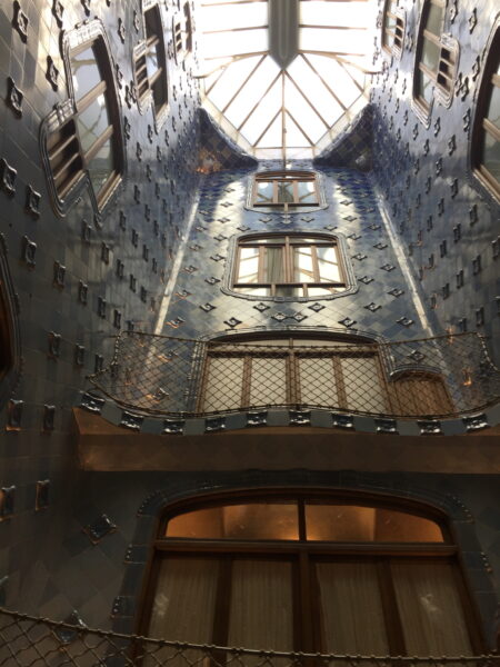 内部には四方にコバルトブルーのタイルを貼った吹抜け空間もあります。