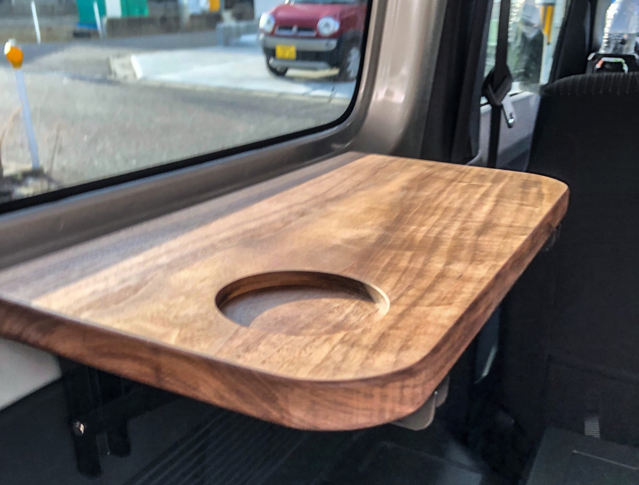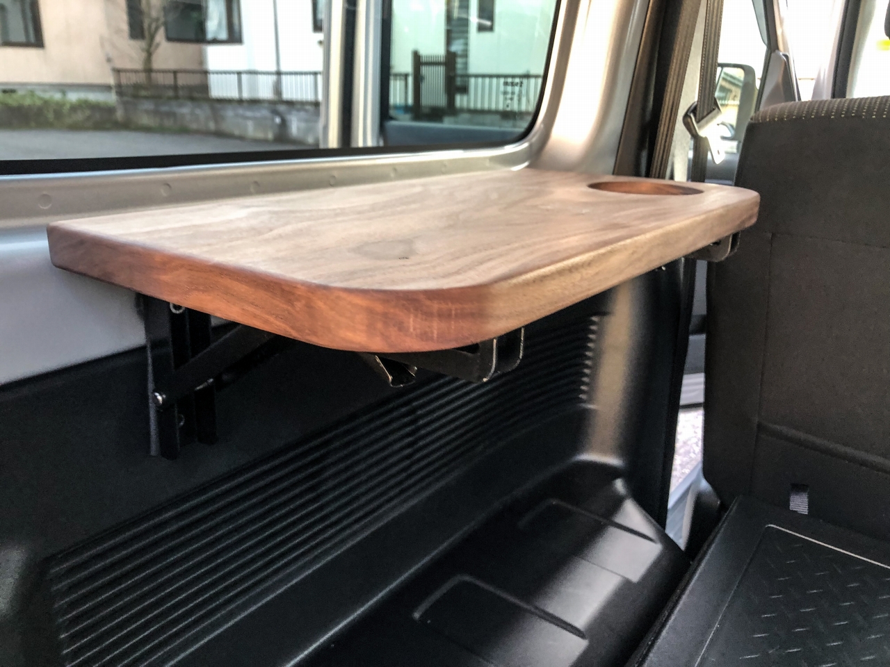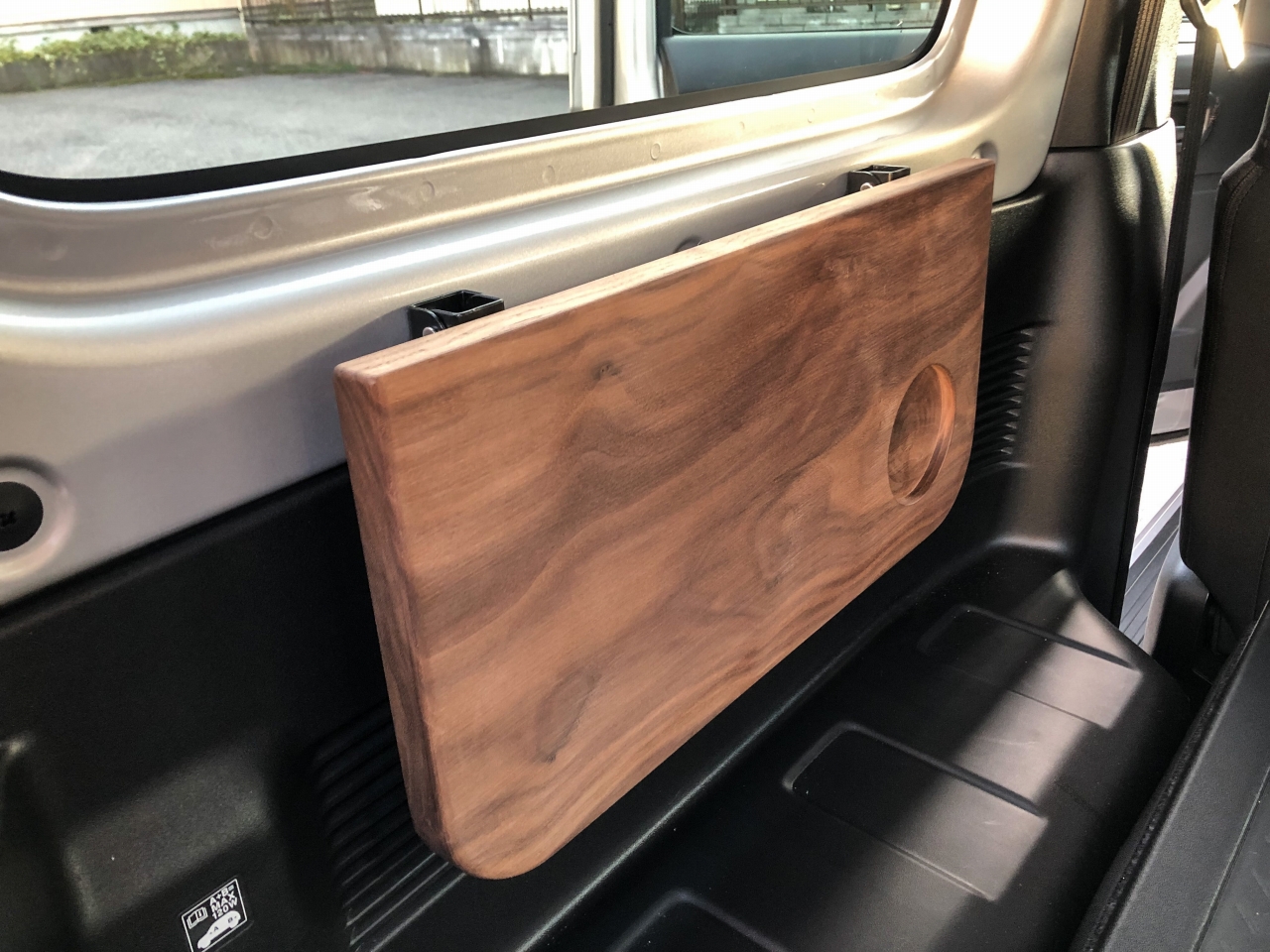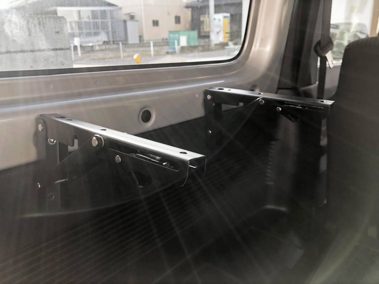後部座席に折りたたみ式の棚を付けることにより、主にキャンプの時などに