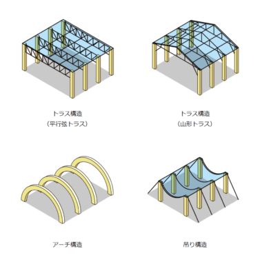 体育館などによく用いられる工法はいろいろあるそうで、