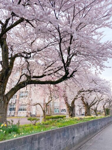 春の桜の時期は、満開の桜並木がきれいな学校でした。