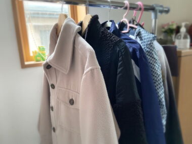 上着についた花粉を家の中に持ち込まないよう、空気清浄機を設置した玄関にコート掛けを移動しました。