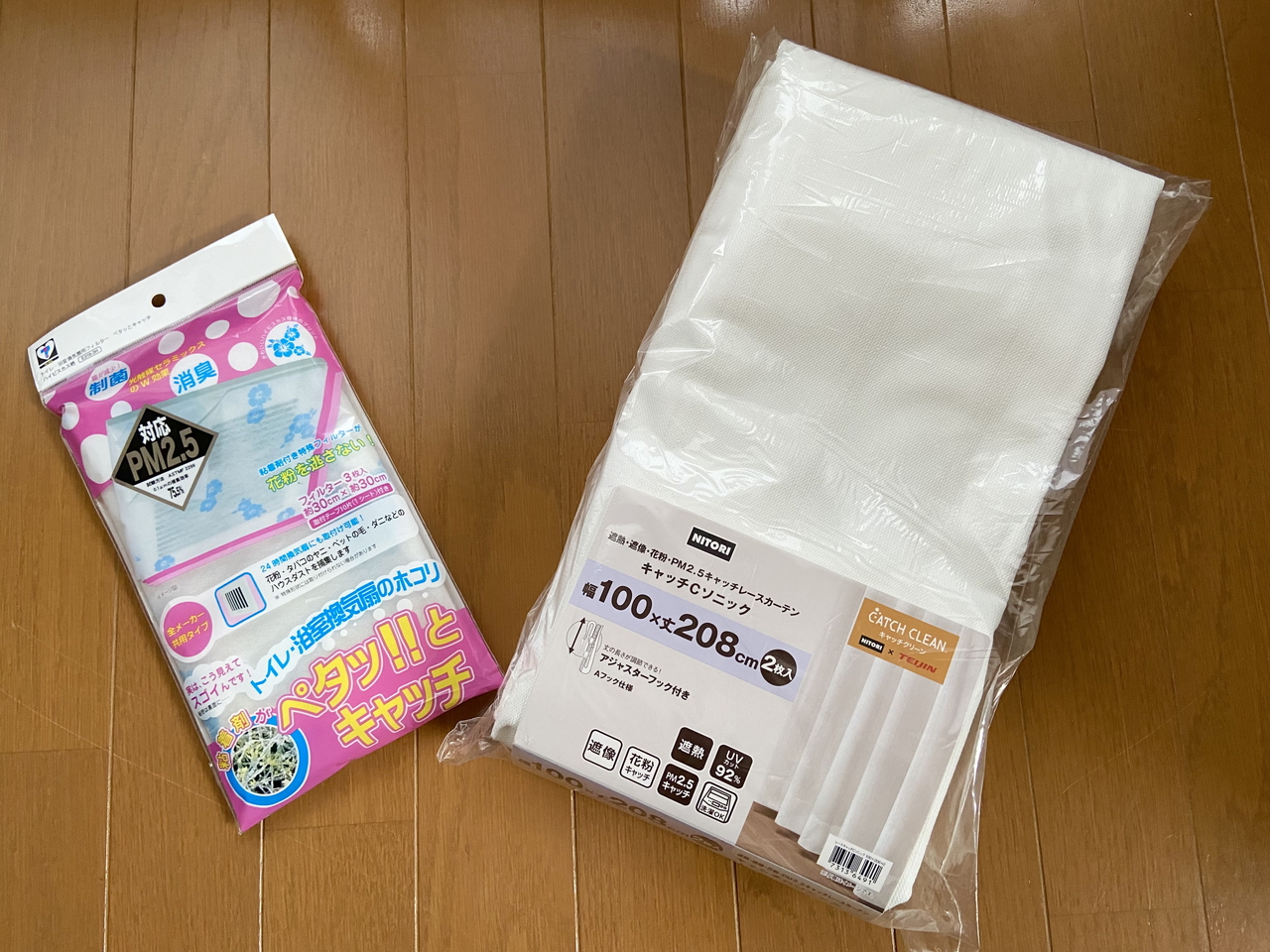 ホームセンターと家具屋さんでフィルターとレースカーテンを購入しました。