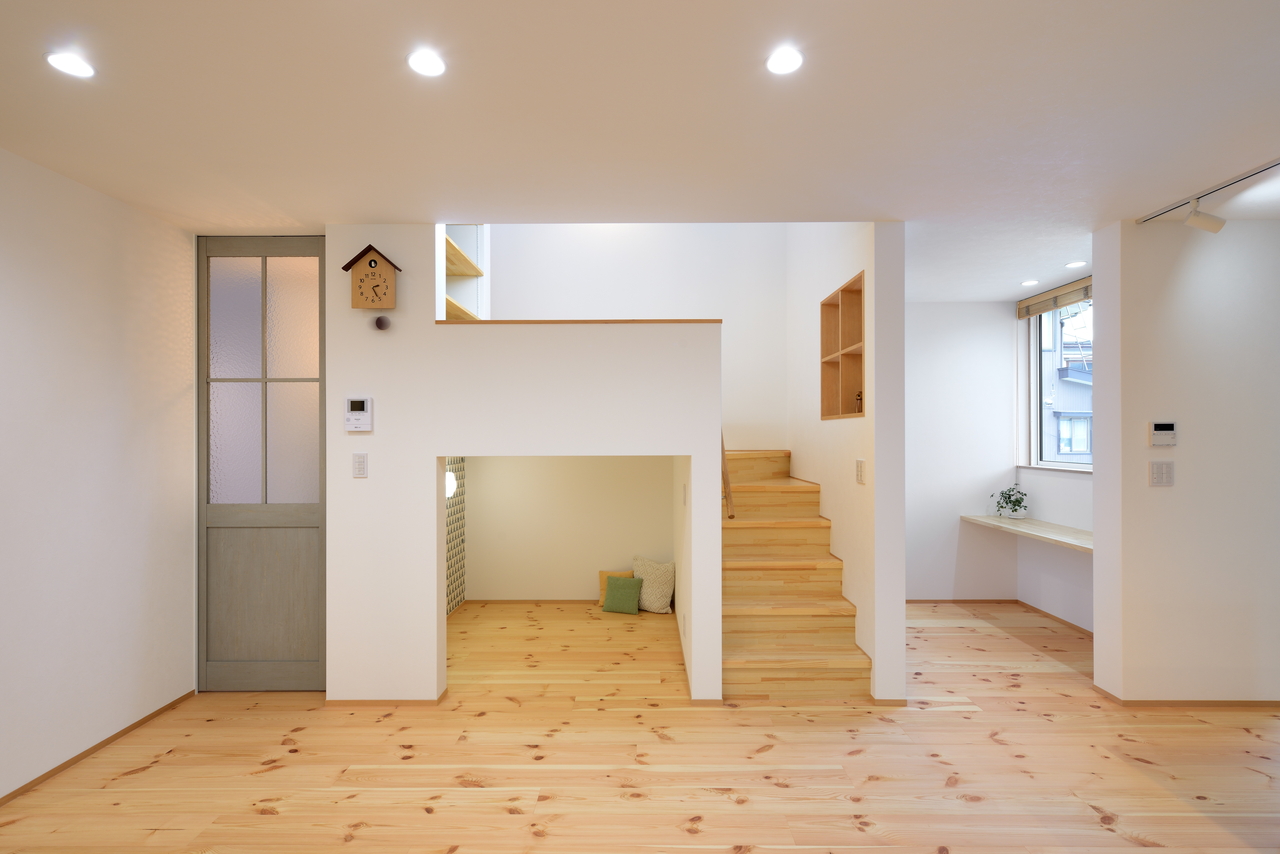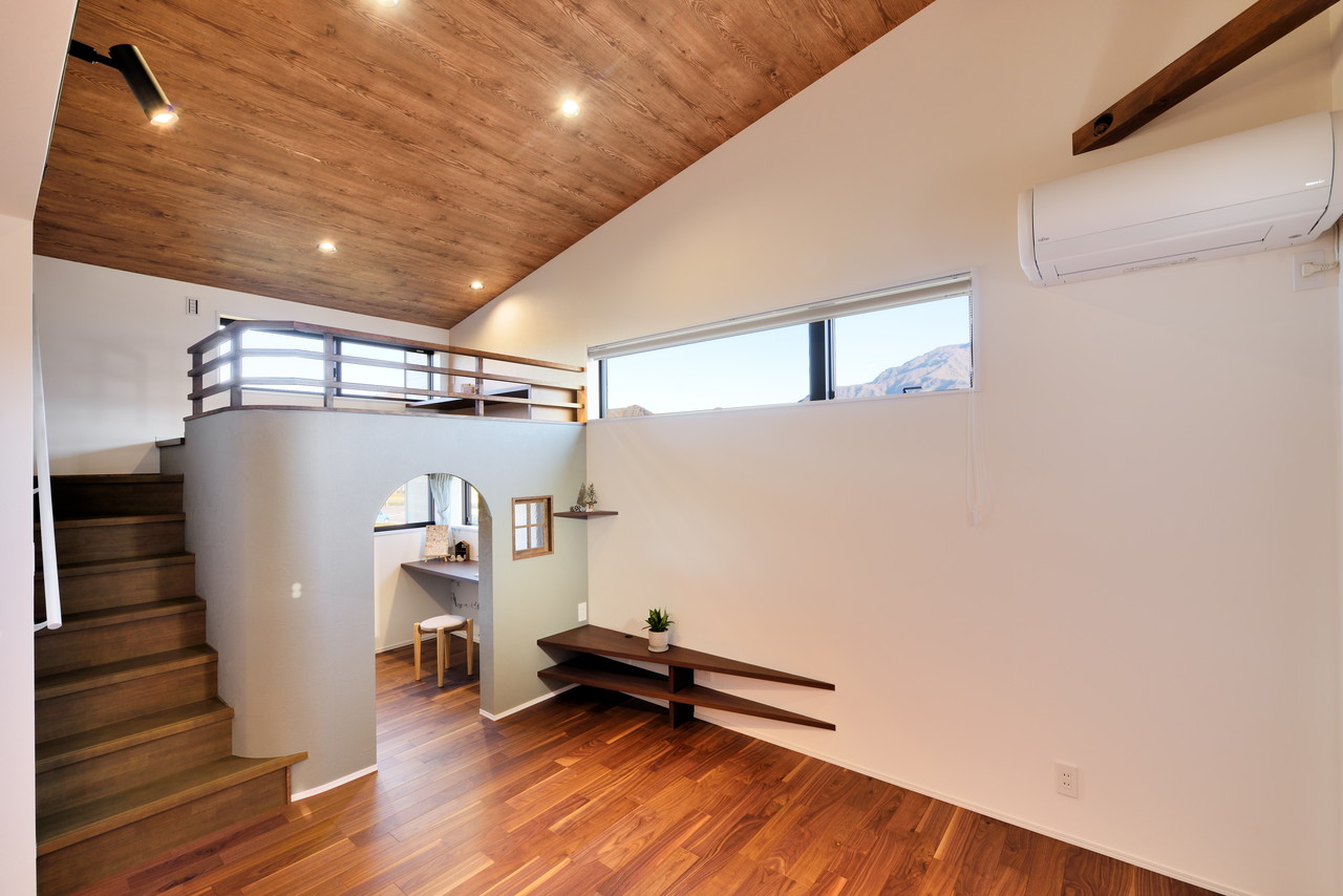 段差を用いて高さを変化させることでスペースを有効活用できるため、お子さんの遊び場や、ご夫婦の書斎、趣味スペースなど様々な用途で利用できる空間だと人気を集めています。