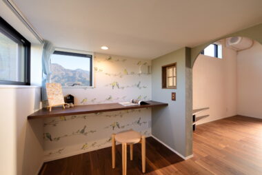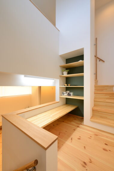 腰を下ろすとキッチンやリビングの様子が見えるため、ほどよく家族の気配を感じながら過ごすことができます。