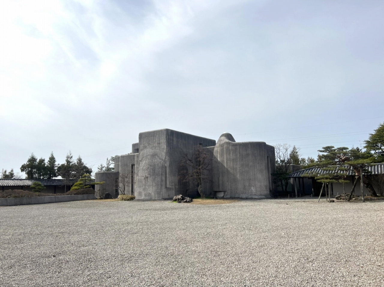 谷村美術館の一案として作成されていた図面をもとに建てられた、「瞑想館」という建物が新潟市の天寿園さんにあります↓