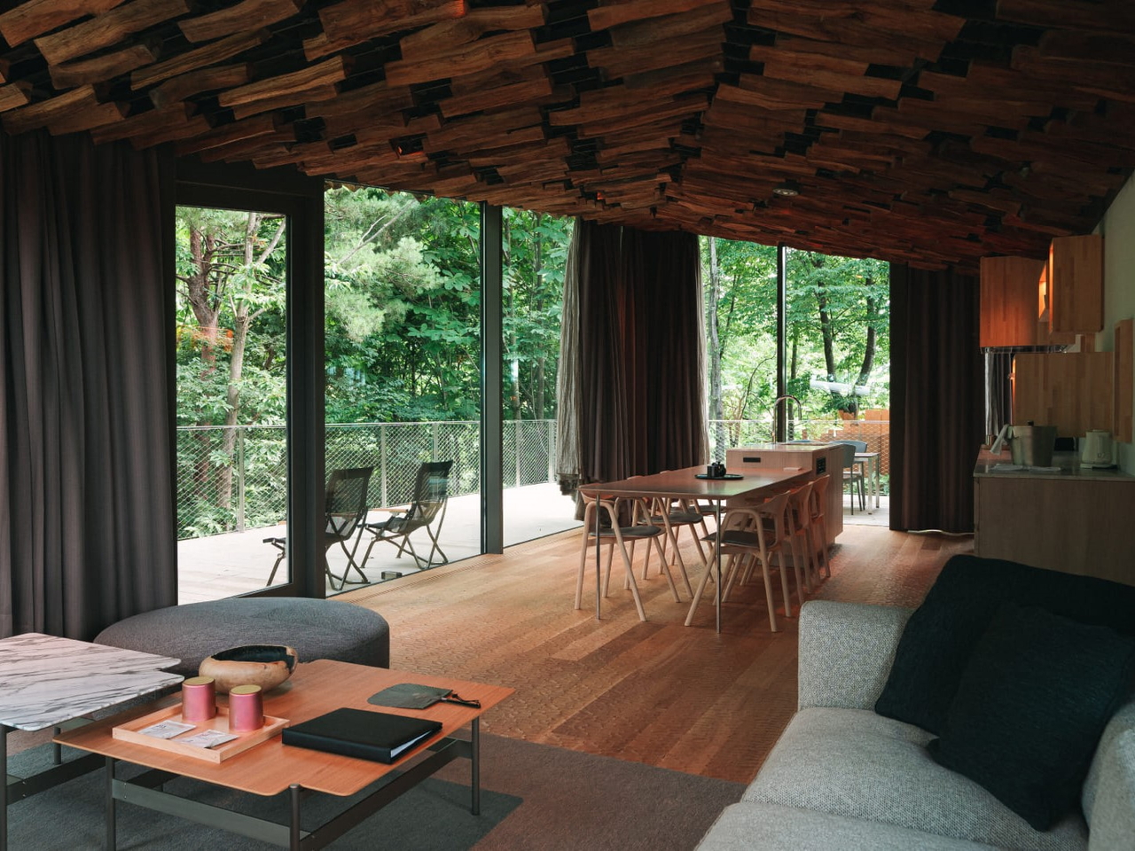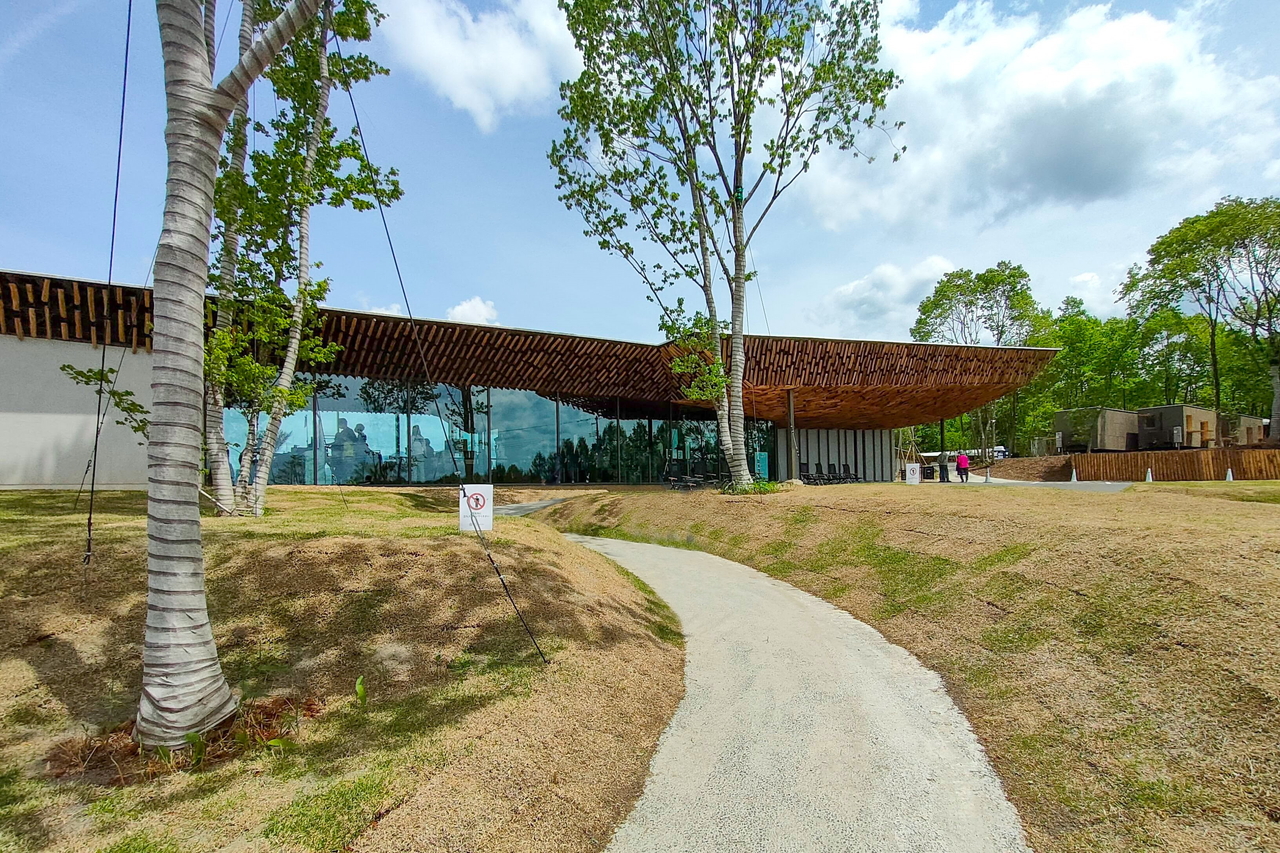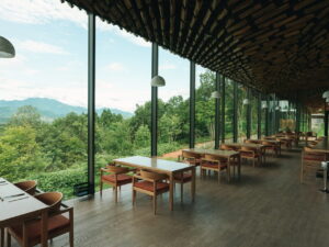 建物内にはこの土地ならではの大自然が感じられるレストランや宿泊棟があり、
