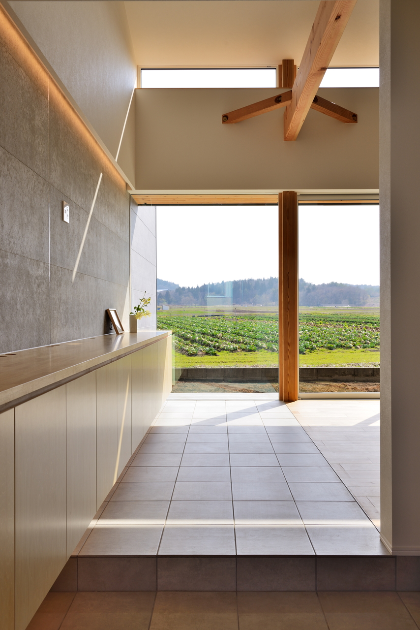 お住まいの南面に広がる田んぼや畑の広がりを眺められる空間となっています。