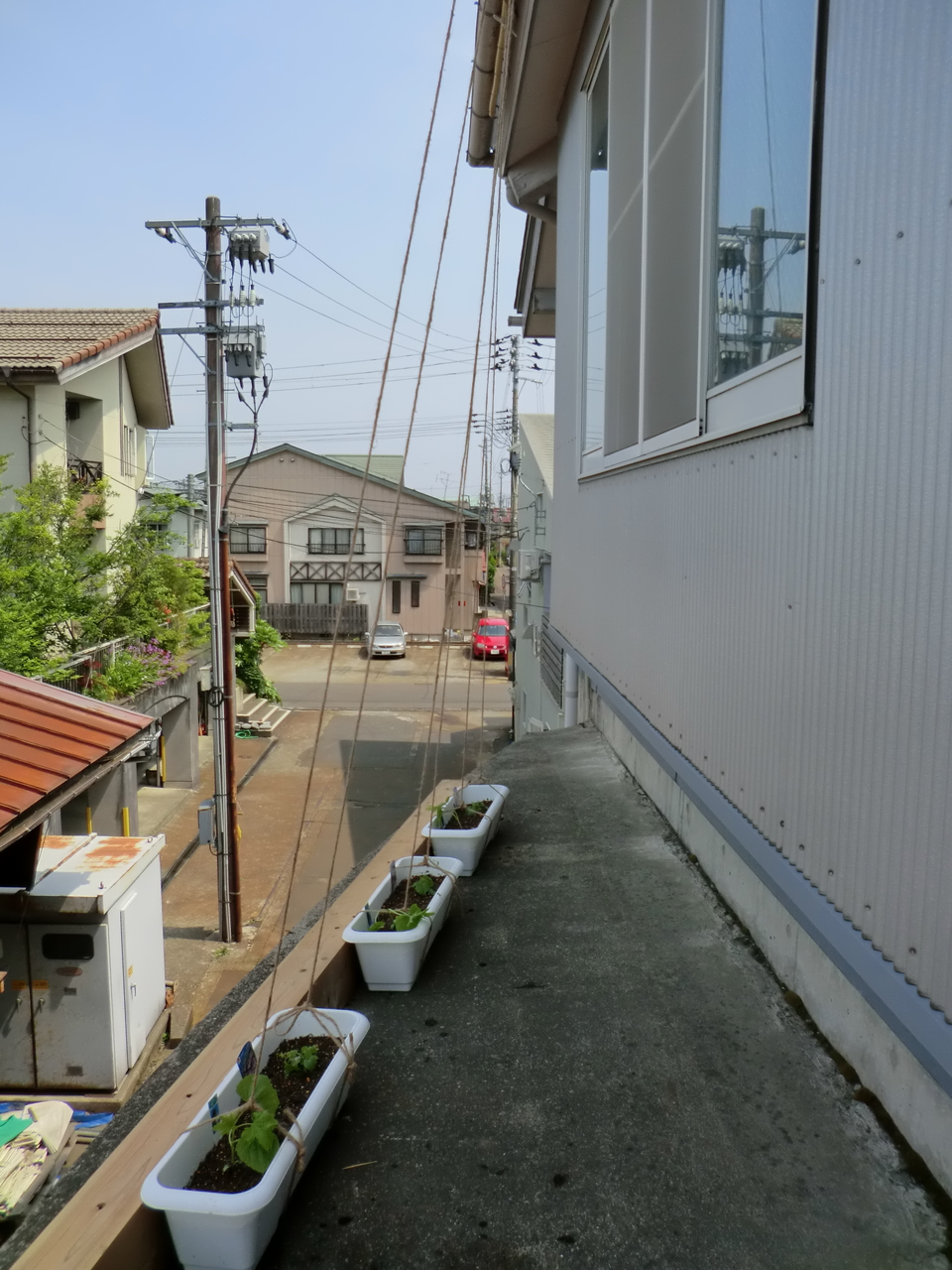 グリーンカーテン、某データでは壁で約11℃ 窓で約4℃ 表面温度が下がるそうです。