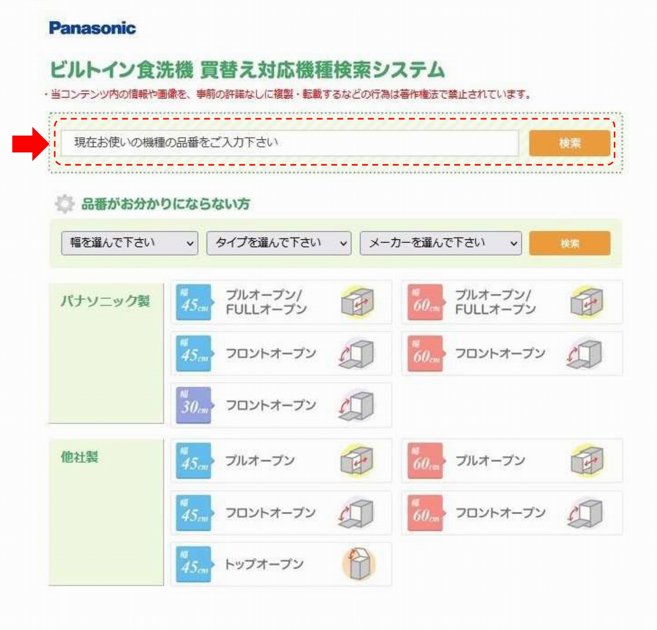 PanasonicではW450のフロントオープン機種が無いため、