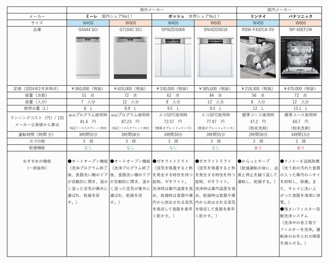 2.フロントオープン食洗機 メーカー別特徴