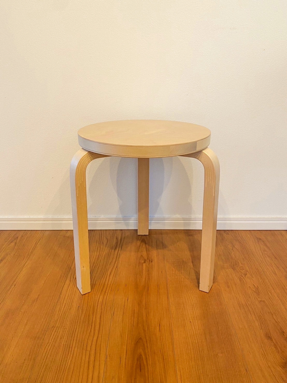 そして右奥の、いくつも重ねられている椅子。『スツール60(artek)』という椅子です。