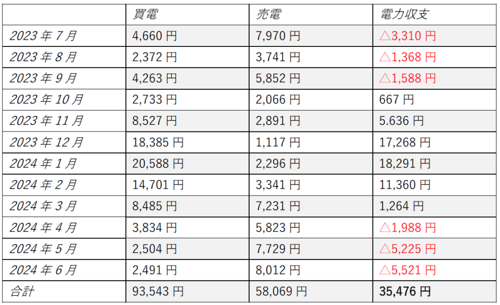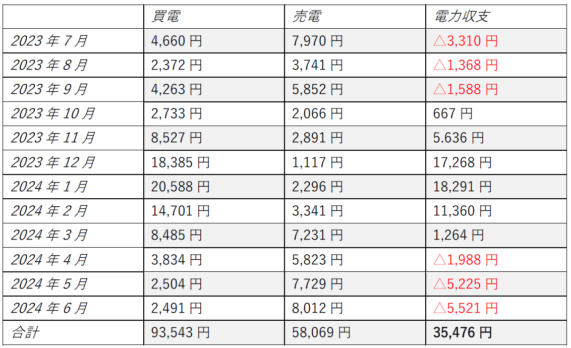 実際の電気代で2023年5月から2024年6月の実績をお伝えします。