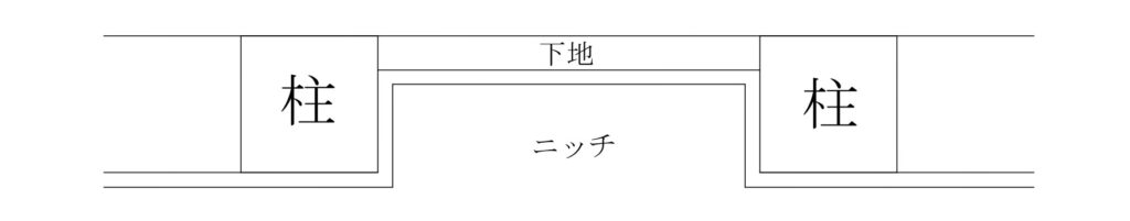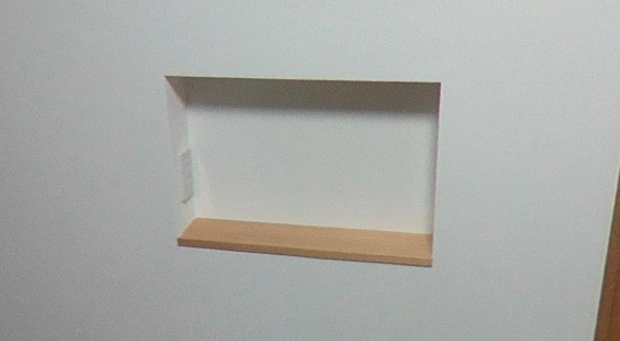 基本的な作り方は、壁の一部を凹型にして、そこへ板材を固定することでニッチが出来上がります。