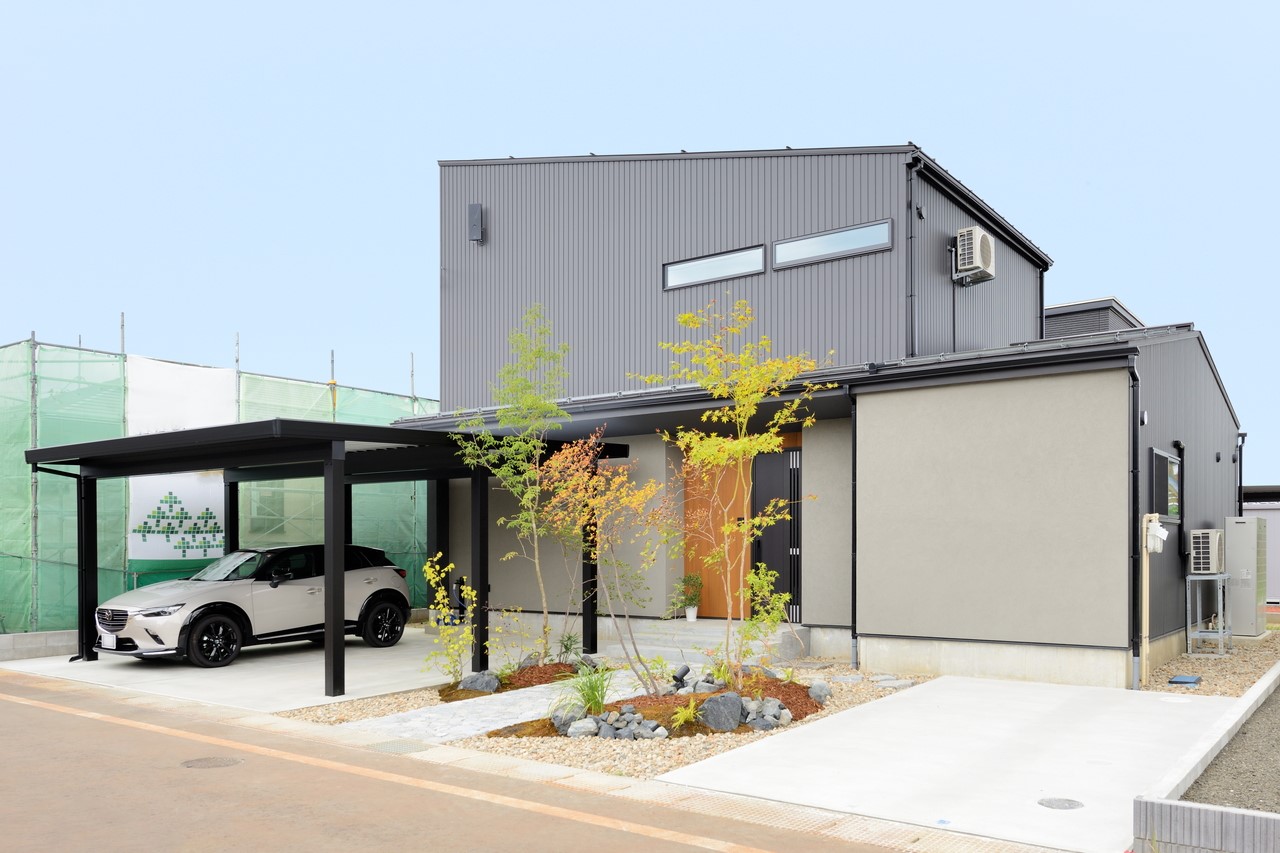 写真のように、駐車スペースは「土間コンクリート」、植栽を植える部分は「土」その他には「砂利」を敷いておくといった、合わせ技にすることも可能です。