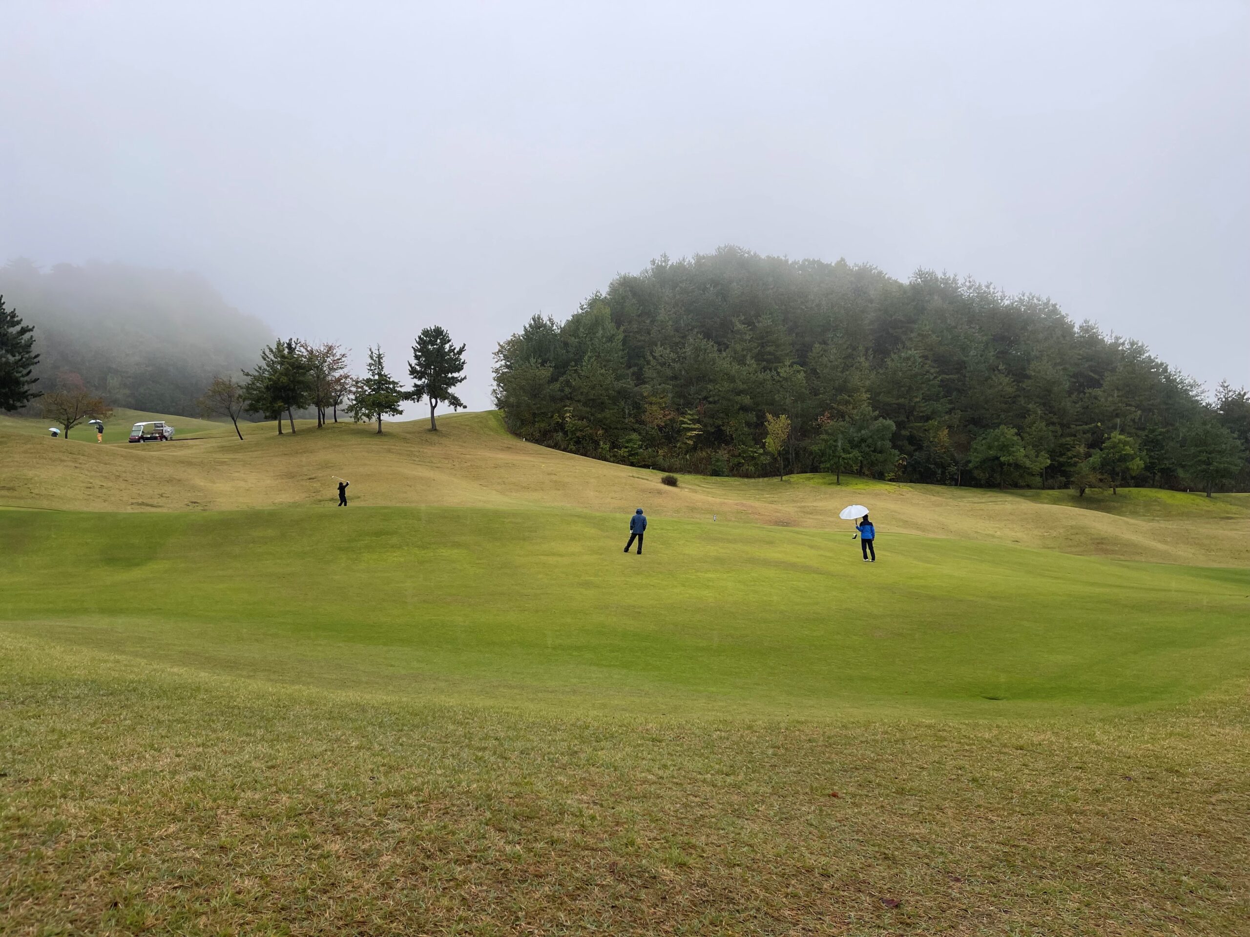 初めて、大雨の中でゴルフでした。