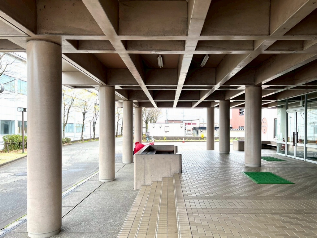 ロングライフセンターと見比べると、共通点にいくつか気づきます。どんなところが似ているか考えてみると面白いかもしれません!このエントランスでよく迎えを待っていましたが、広い軒下空間というのも新潟らしいなと感じます。