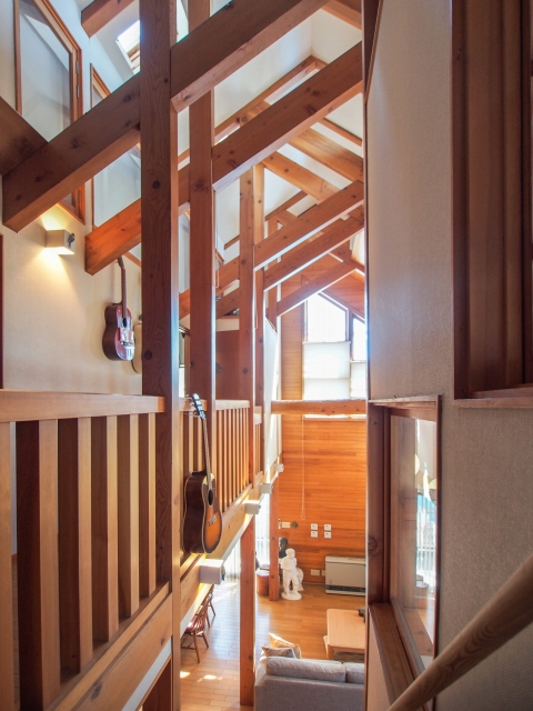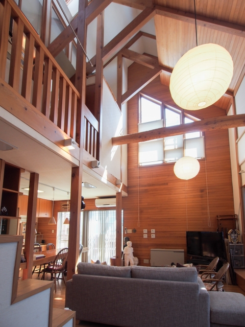 新潟営業所開所当初のお住まいですが、木の暖かさ、登り梁の力強さを感じられるダイナミックな空間にとても感動しました。