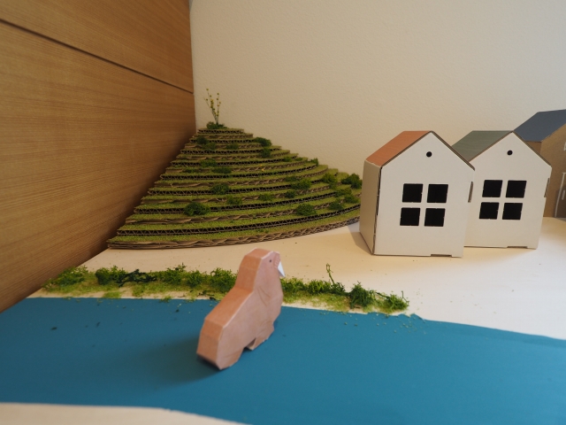 その上に道路・山・川・木、小さな家やお店を並べていきます。
