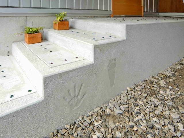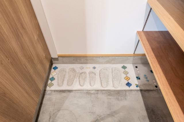 ▼I様邸 玄関ポーチ(手形・足型+ビー玉)