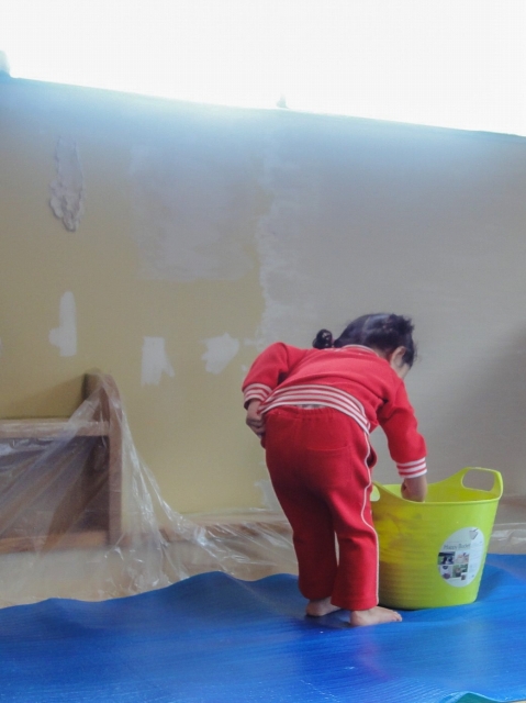 当時4歳の娘が「手伝う!」ということで、道具を渡し、好きなように塗ってもらいました。