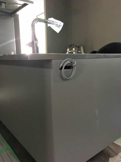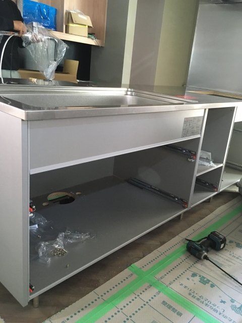 先日、進行中現場にてシステムキッチンの施工に立会ってきましたので、どのように組立てていくのかをお伝えしたいと思います。