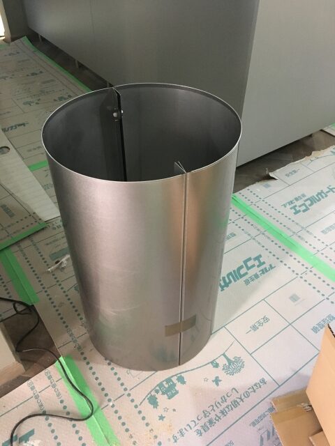 ・・・レンジフードのカバーです。ダクトを繋ぎ終えたら前後からカバーを取付け。