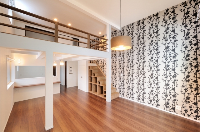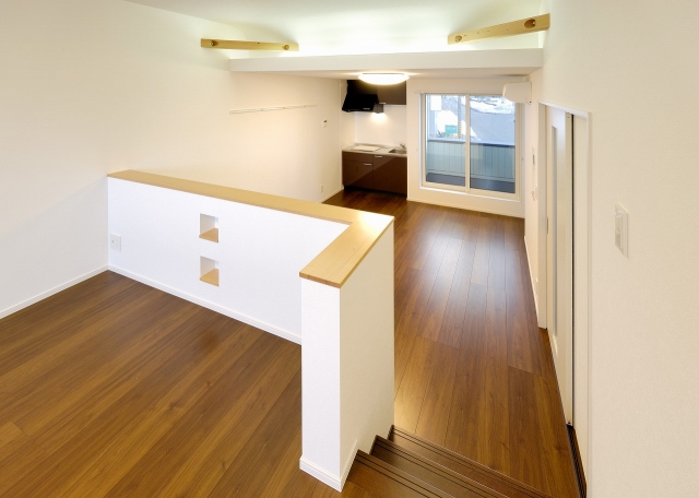 部屋を段差で区切ることにより、広々空間を演出。現在空室となっており、いつでもご案内が可能です。