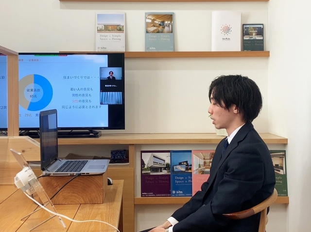 パーティションを設置したり、消毒や検温の準備をしたりといったコロナ対策と合わせて、リモートでの中継と、初めての試みが多かった今年の会社説明会。