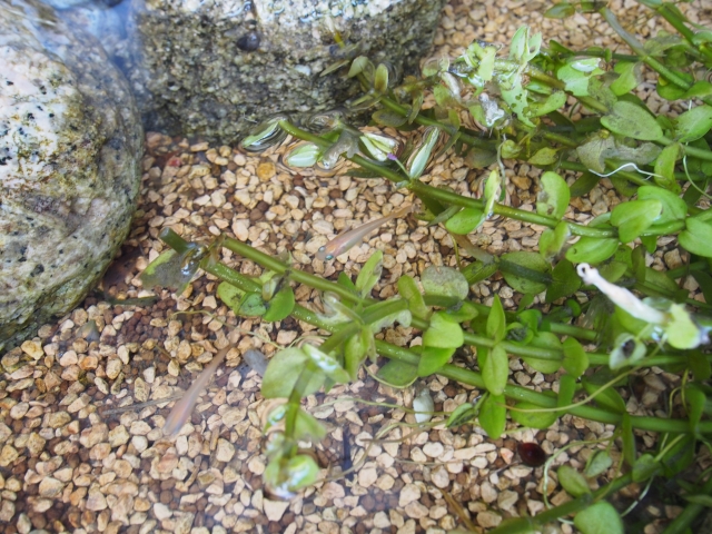小さな自然を感じる新潟営業所のビオトープには、小さなお魚を発見できることも。
