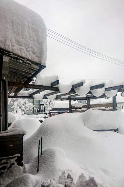 1/7の大雪強風警報から一夜を迎え、1/8の朝、出勤前の雪かきを終えて屋根の雪の量を確認したら、なんと‼