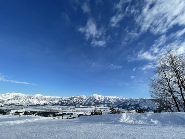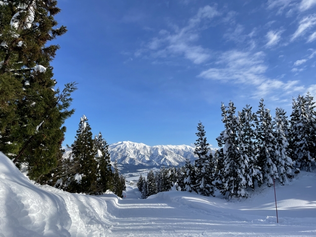 寒いからと敬遠される方も多いですが、雪の上を滑るスピード感と気持ち良さはもちろん、スキー場ごとに違う、山の上からしか見えない雪景色も楽しみの1つです。特に、晴れた日はどこまでも広がる青空と一面の銀世界が爽快です。