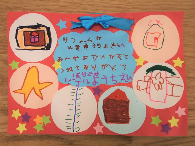 さらに、工事を頑張ってくれた業者さんへも手作りのお手紙をいただきました。