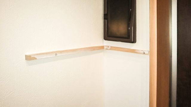 こんな受け材を壁に取り付けして(白いのはボンドです)
