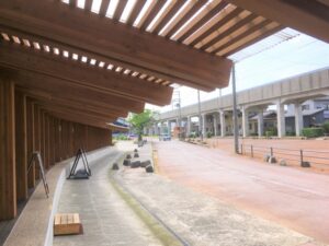 深く長く続く縁側、構造表しの軒がとても美しい建築です。