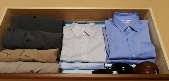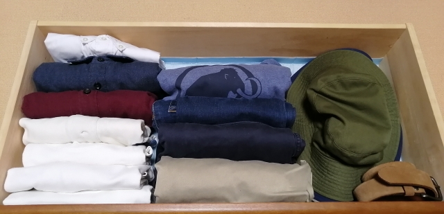 プライベート用と仕事用を合わせて、引き出し2段のみだけで1年分の服たちを収納できました!