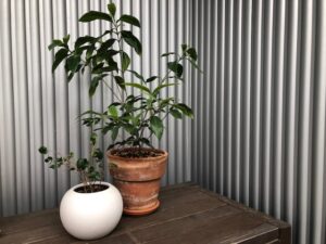 左はベンジャミンバロックというゴムの木の一種です。