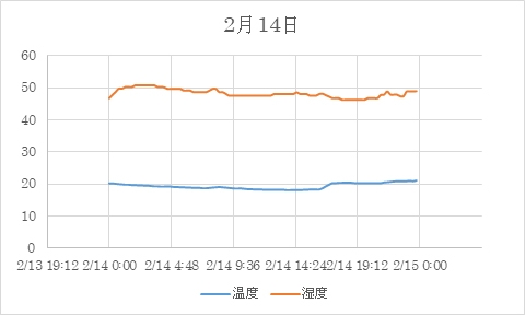 【2月14日】比較的気温が高かった日のデータです