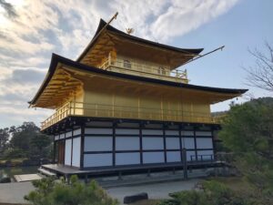 30年以上前に金箔を張り替えているそうなのですが、近くで見ても最近張り替えたのではないかと思うくらいピッカピカ。晴れていたので、鏡湖池に「逆さ金閣寺」が綺麗に映し出され、すごく神秘的でした。