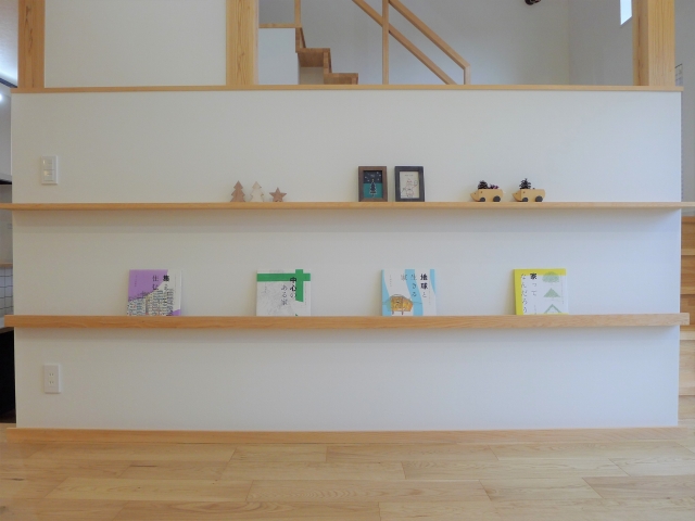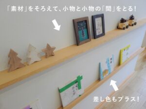 飾り棚には木の素材が使われた小物を配置。