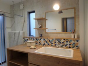 次はタイルが特徴的な造作洗面台です。