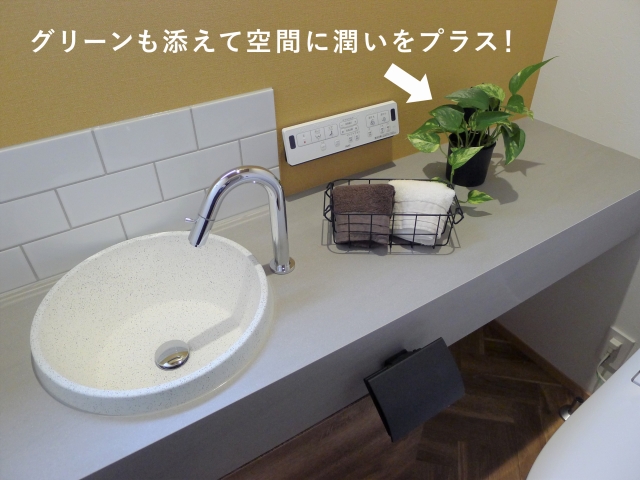 タオル掛けや紙巻器に黒のアイアン素材を使用しているので、