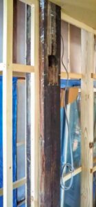 新しい玄関となる場所にこの家の中で一番太い柱が出てきました。