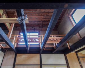 築80年の住まい、味のある真っ黒な梁や今ではほとんどなくなってしまった丸太梁がとても魅力的です。
