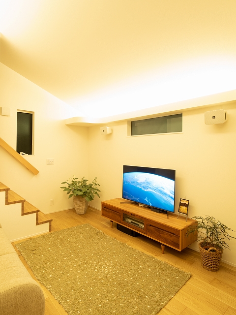2階へと緩やかにスペースを繋げることが一番の目的であるリビングの勾配天井ですが、もう一つ、音響効果にも期待しています。