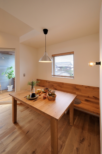 オリジナルの造作ベンチは、快適でいつまでも長居したくなります。