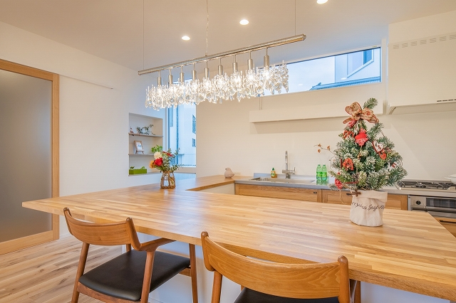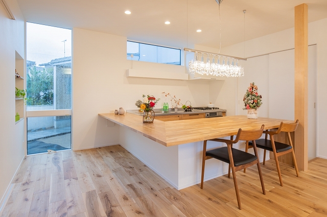 大勢でカウンターキッチンを囲んでくつろぎたいご希望が実現しました。