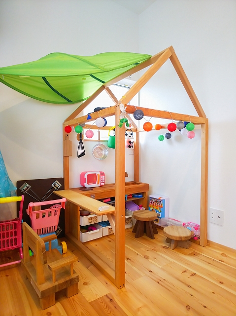 1歳の誕生日にプレゼントしたという木のおうちとキッチンが!!