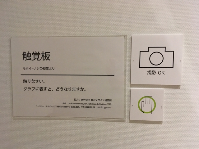 木材や金属、タイルなど様々な素材が並べてある板を実際に触り、硬さ・暖かさ・滑らかさという感覚をグラフ化するコーナーもあります。